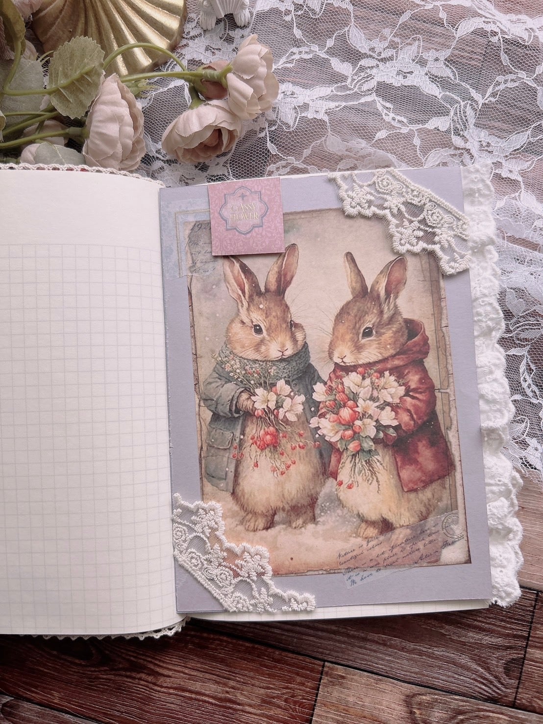 やわらかな花柄と布のぬくもりを感じる、ハンドメイドのコラージュ雑記帳。
